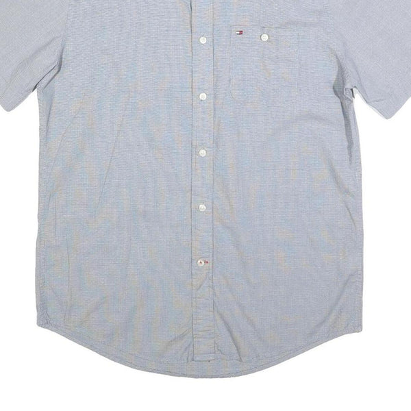 TOMMY HILFIGER Mens Blue Button-Down Short Sleeve Shirt S Cotton Classic Fit