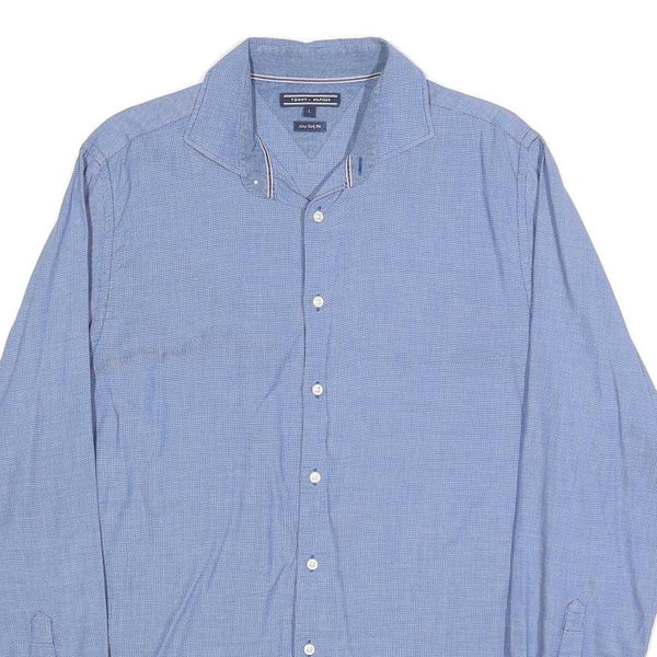 TOMMY HILFIGER Mens Blue Cotton Blend Shirt L Classic Fit Button-Up Stylish