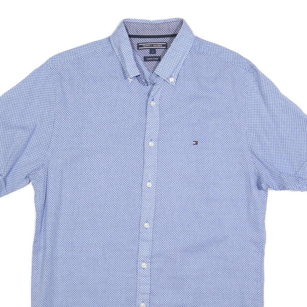 TOMMY HILFIGER Mens Blue S Shirt Linen Blend Button Down Collar Short Sleeve