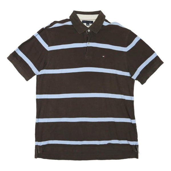 TOMMY HILFIGER Mens Brown & Light Blue Striped Short Sleeve Polo Shirt XL Cotton
