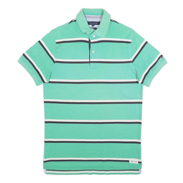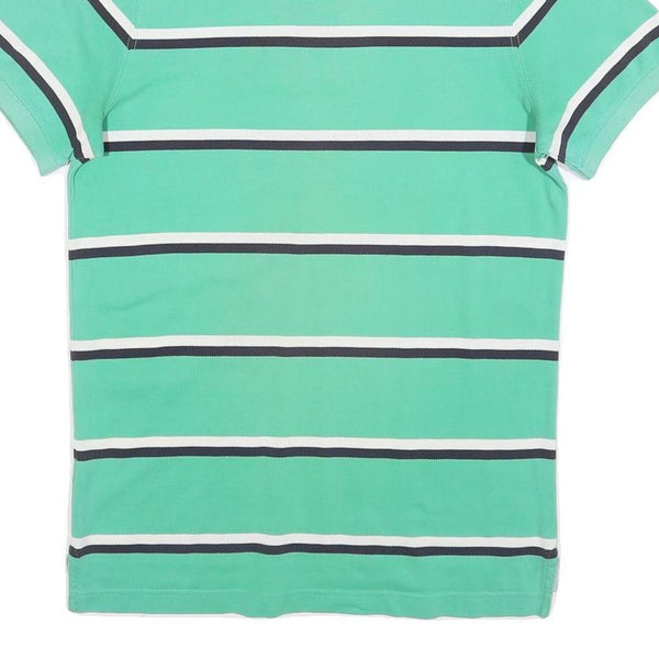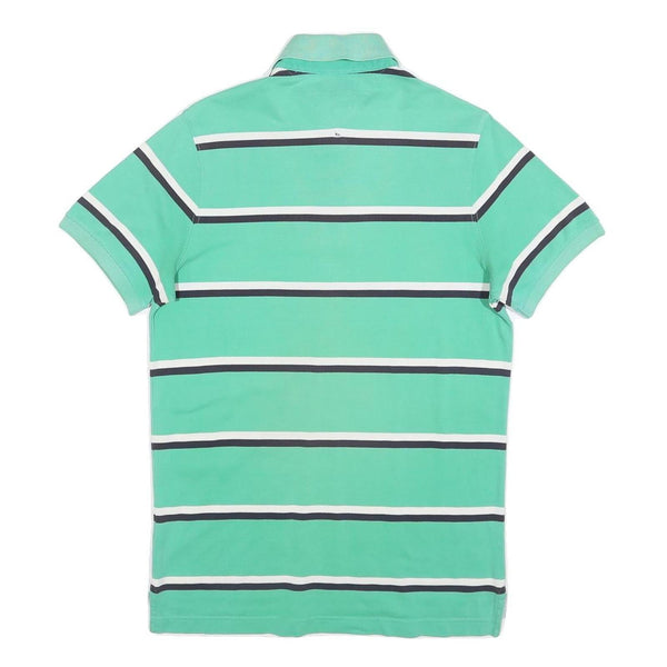 TOMMY HILFIGER Mens Green & White Striped Short Sleeve Polo Shirt M Cotton Blend