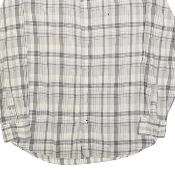 TOMMY HILFIGER Mens Grey & Cream Check Shirt M Button-Down Collar Long Sleeve
