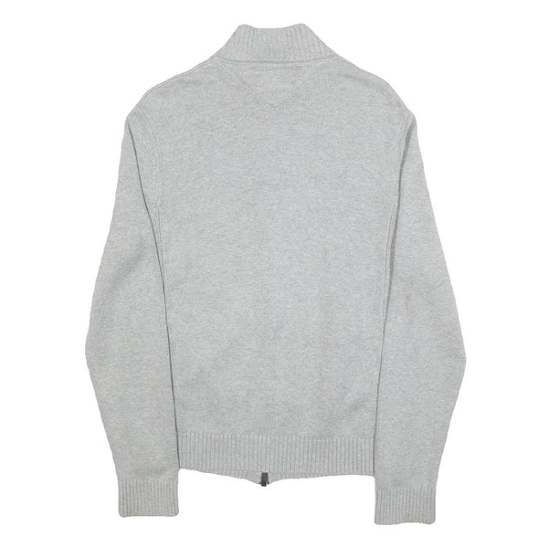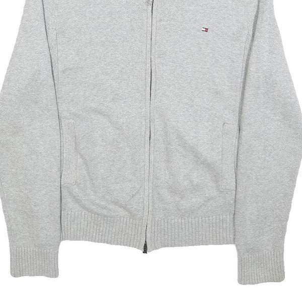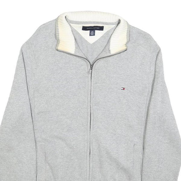TOMMY HILFIGER Mens Grey Plain Full Zip Jumper Crew Neck Basic Knit S Classic