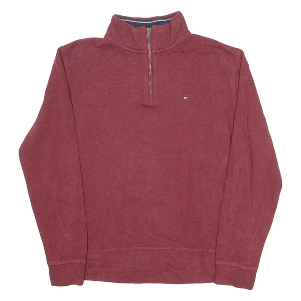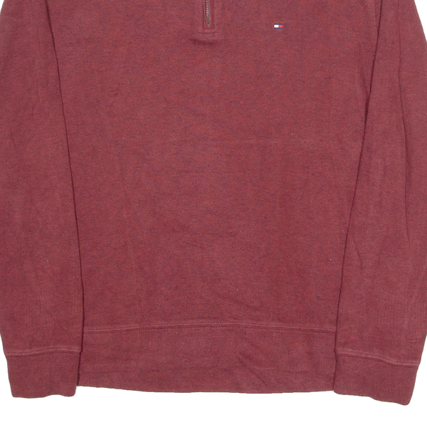 TOMMY HILFIGER Mens Jumper Maroon 1/4 Zip Tight Knit L