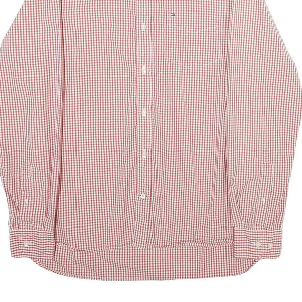 TOMMY HILFIGER Mens Red & White Check Shirt M Long Sleeve Cotton Classic Fit