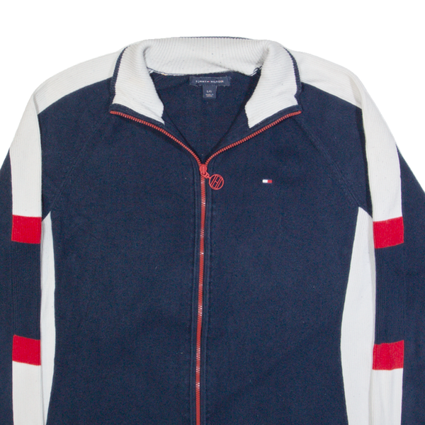 TOMMY HILFIGER Womens Cardigan Blue High Neck Tight Knit L