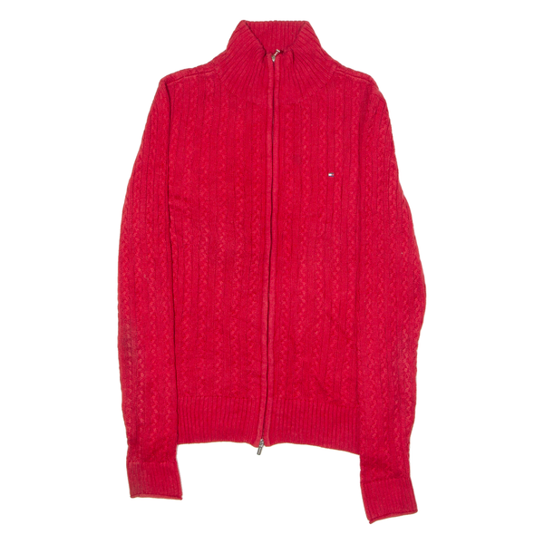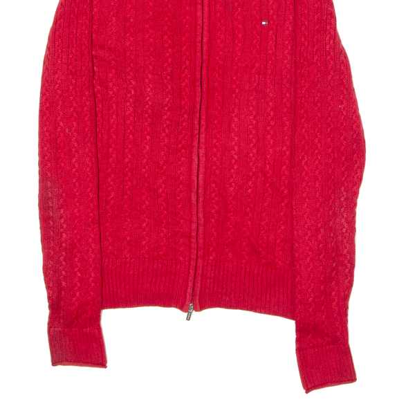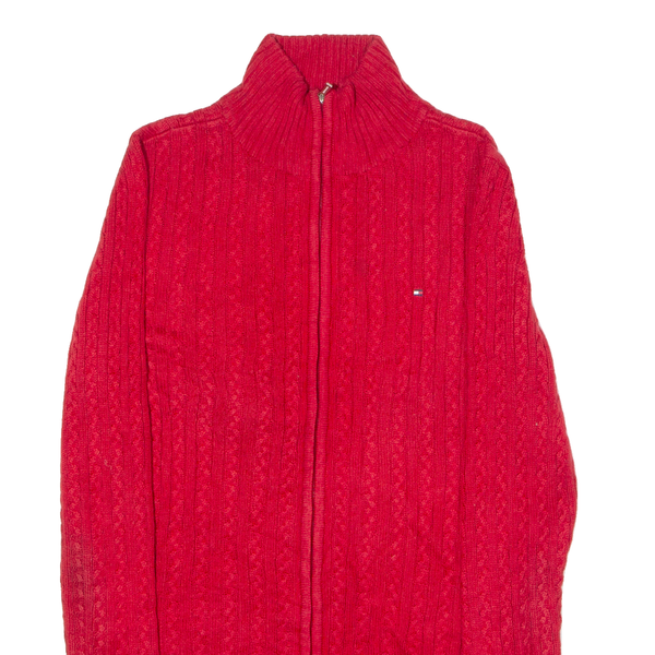 TOMMY HILFIGER Womens Jumper Red High Neck Cable Knit S