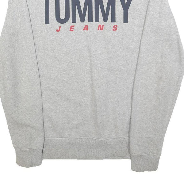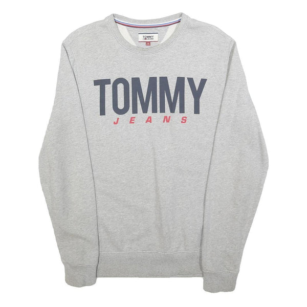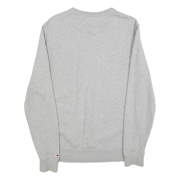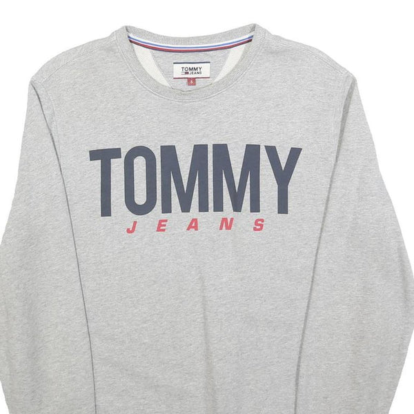 TOMMY JEANS Mens Grey Sweatshirt Crew Neck S Logo Print Cotton Blend Casual