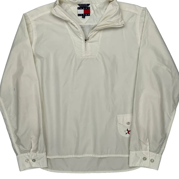Tommy Jeans White Windbreaker, High Neck, Long Sleeve, Very Good Condition.