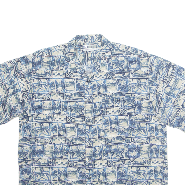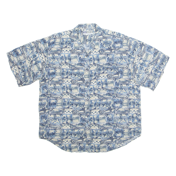 UNTIED Mens Hawaiian Shirt Blue Crazy Pattern XL