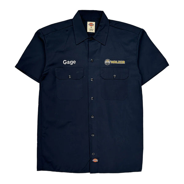 Navy Short Sleeve Work Shirt With Walker Logo And 'Gage' Name Embroidery