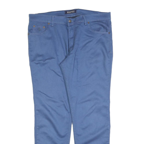 Wallpolo mens cotton blend blue slim tapered trousers w40 l32 stylish casual