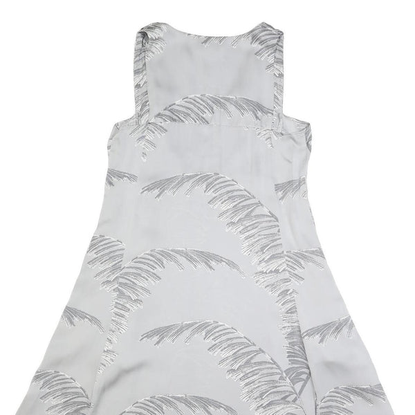 This WHISTLES dress for womens features a soft white base with an elegant grey leaf pattern throughout, creating a sophisticated and understated look. The sleeveless design and V-neckline offer a classic silhouette with a flattering A-line cut that gently flares towards the hem.