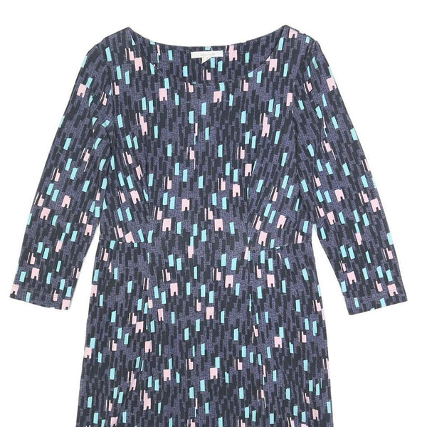 WHITE STUFF Womens Blue Day Jersey Geometric 3/4 Sleeve Knee Length UK 8 Dress