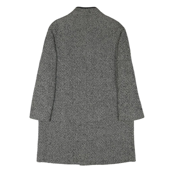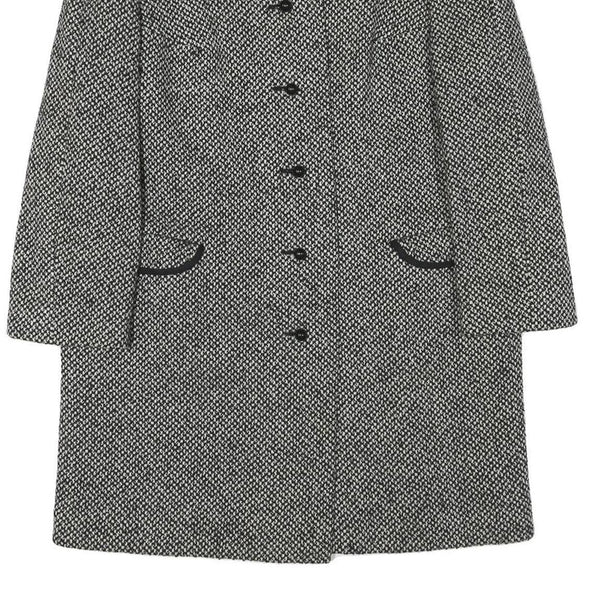 Womens Black & White Wool Blend Plain Jacket L Button Closure Long Sleeve