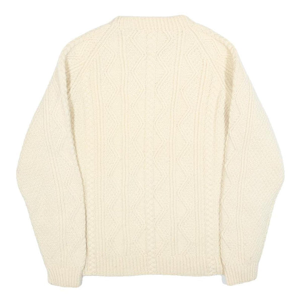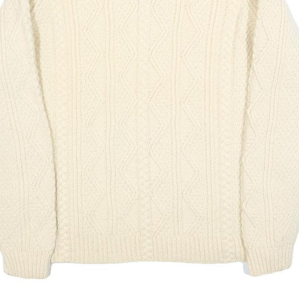 The jumper has a chunky knit texture that gives a cozy and warm feel, perfect for layering on cooler days. It has a relaxed fit in a small size, offering comfort and versatility for casual or smart-casual wear. No visible branding is present on this timeless style.