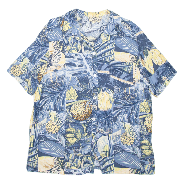 Womens Hawaiian Shirt Blue Viscose Crazy Pattern XL