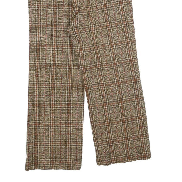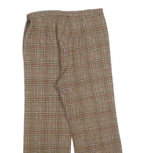 Womens Regular Fit Checked Zip Trousers W30 L24 Brown Beige Classic Pattern