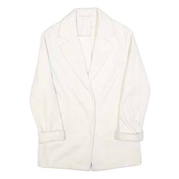 Womens White Button Jacket M Plain Classic M Length Elegant