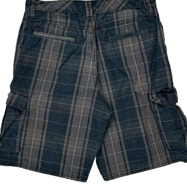 Gray And Black Checked Cargo Shorts With Multiple Pockets