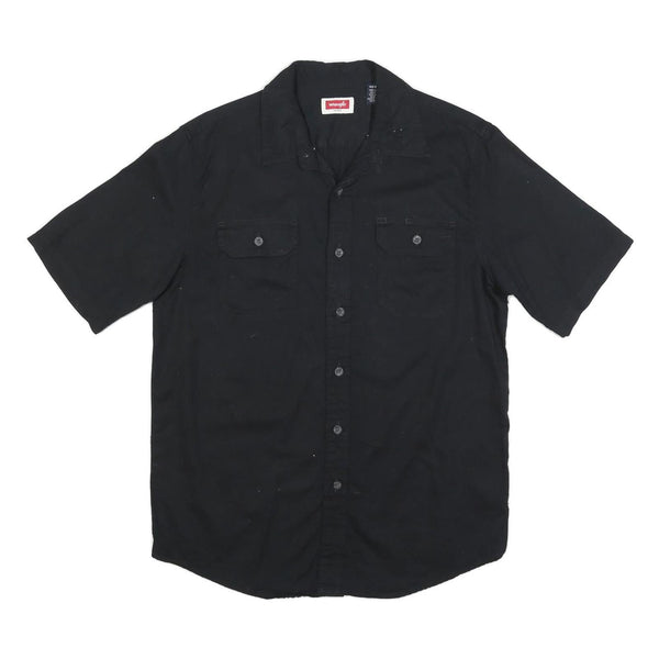 WRANGLER Mens Black Casual Shirt L Cotton Blend Button Front Short Sleeve