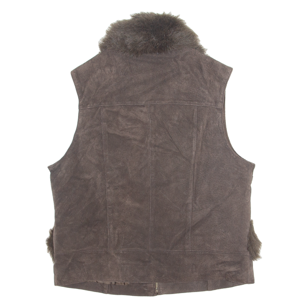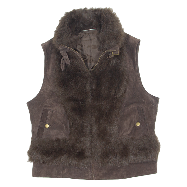 YESSICA Faux Fur Womens Gilet Brown Leather UK 14