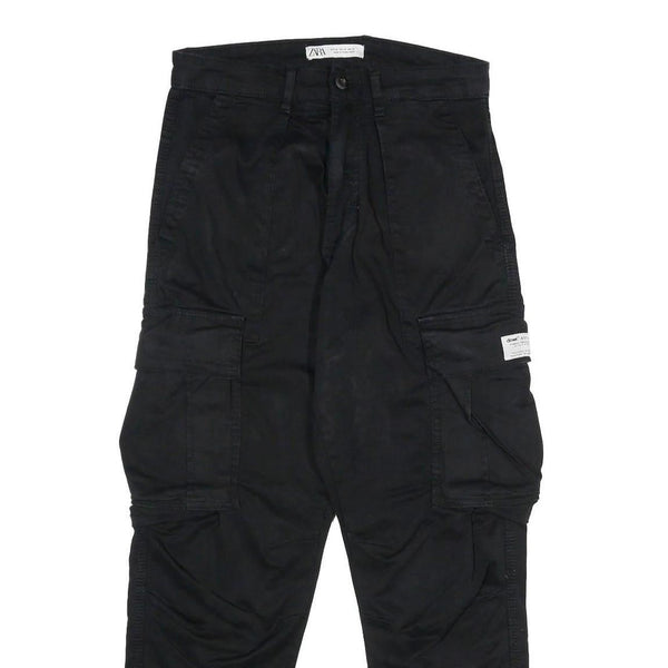 ZARA Mens Black Regular Cargo Trousers W30 L30 Cotton Blend Zip Pocketed