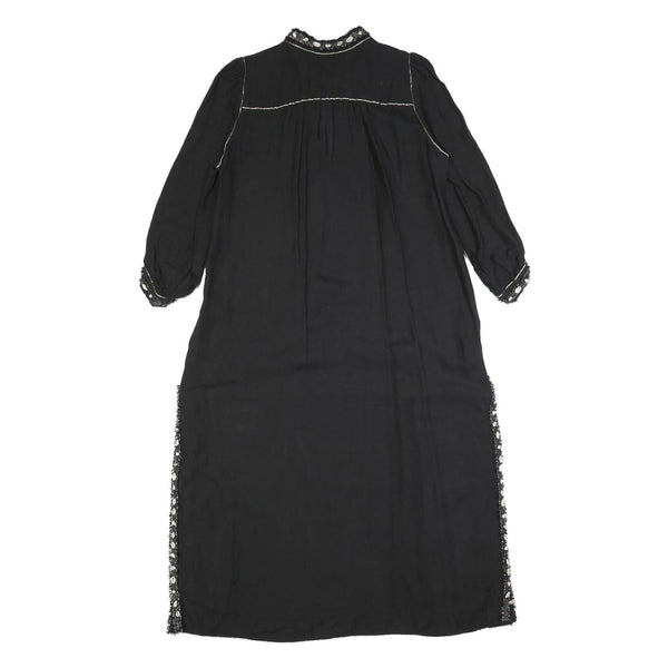 ZARA Womens Black Day Woven Plain 3/4 Sleeve Midi L Dress Embellished