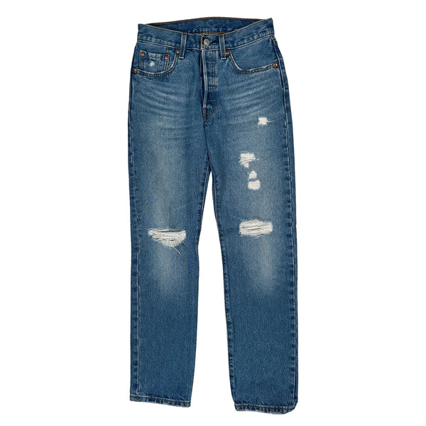 501 Levis Jeans, fit a 26″ Waist and 27″ inseam.