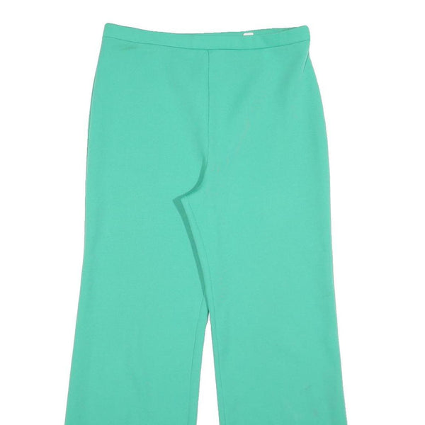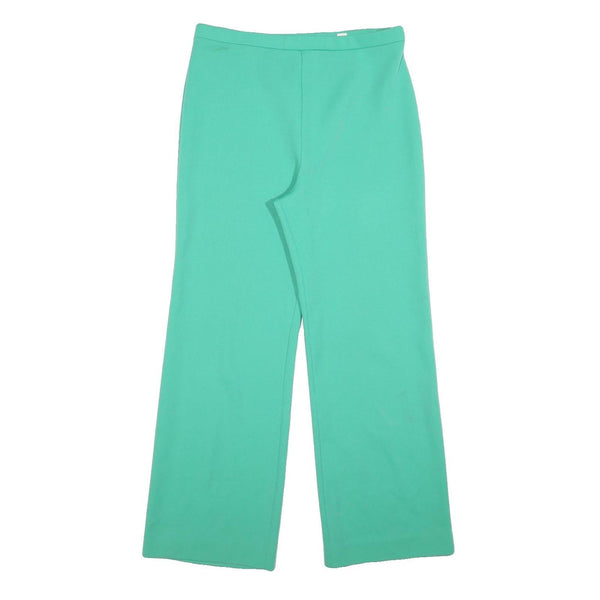These jade green trousers from ACT IN offer a vibrant addition to any wardrobe. Made from smooth polyester fabric, they feature a relaxed fit with a straight leg style that provides comfort and ease of movement. The front view shows a clean design with no visible pockets, and the back has subtle dart details giving a tailored finish.