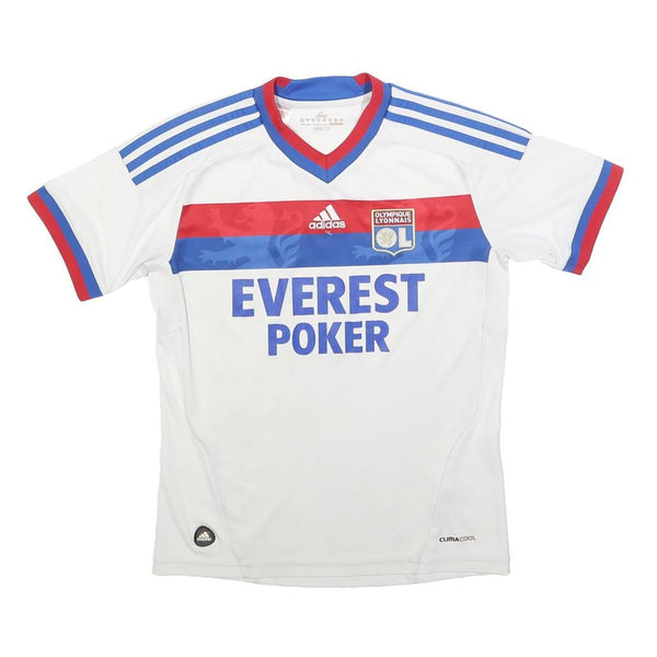 ADIDAS Boys White Blue Red Olympique Lyonnais Football Shirt 11-12Y Short Sleeve