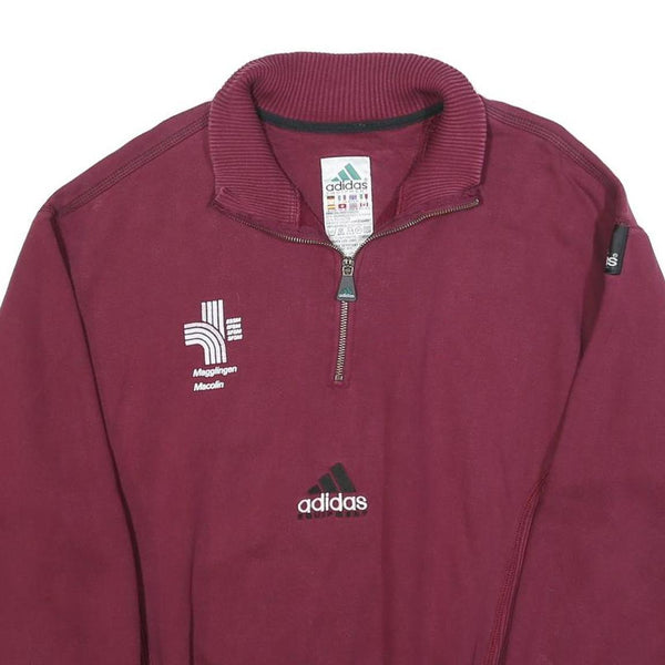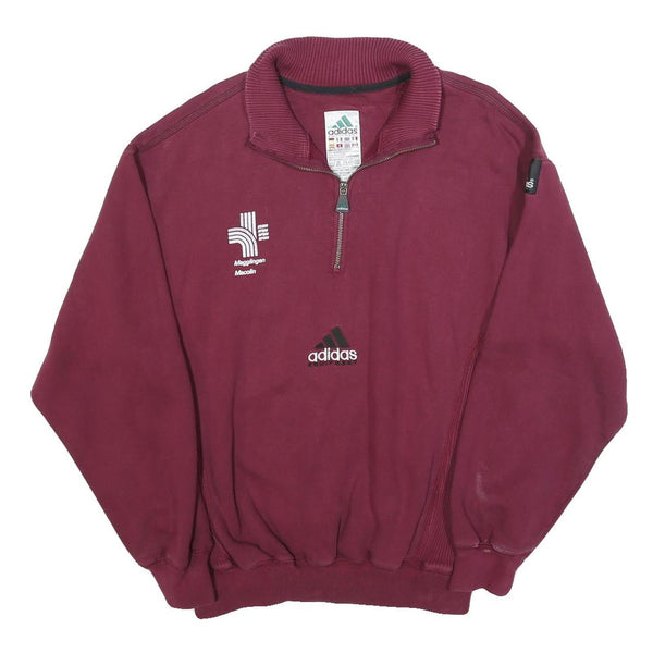 ADIDAS Mens Maroon 1/4 Zip Sweatshirt M Cotton Blend Casual Pullover