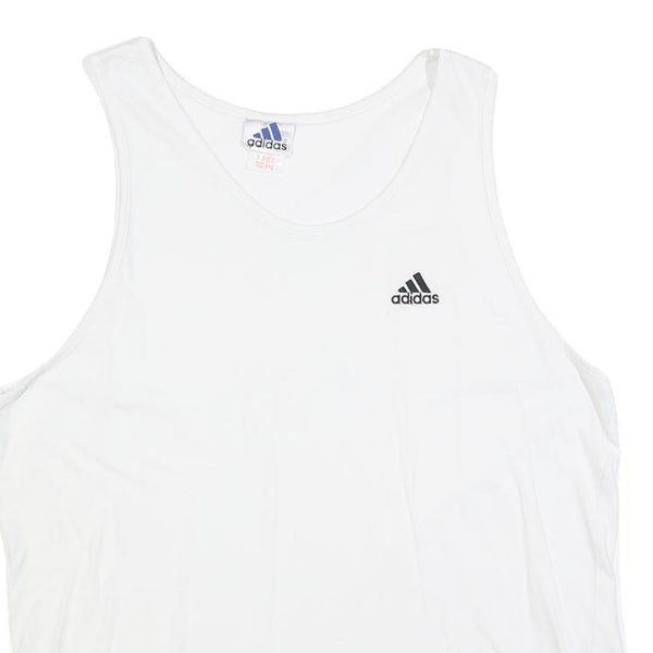 ADIDAS Mens White Vest L Sleeveless Crew Neck Cotton Blend Sports Casual Gym