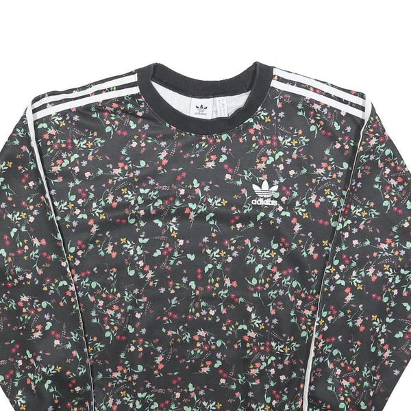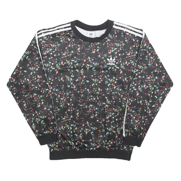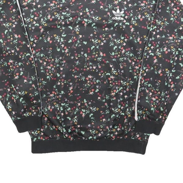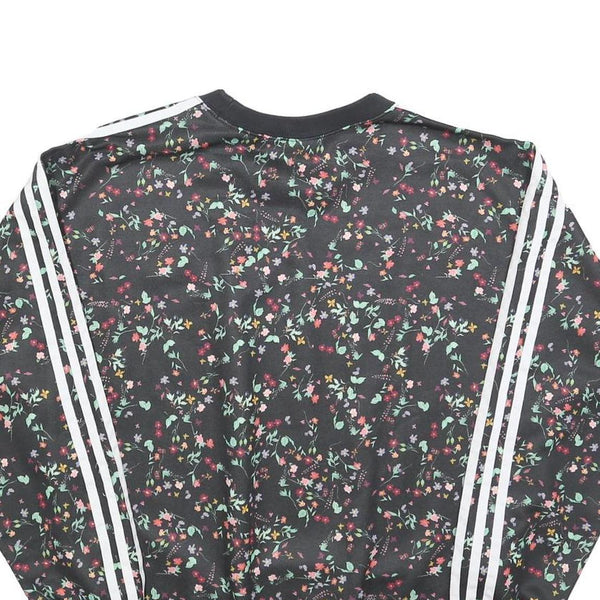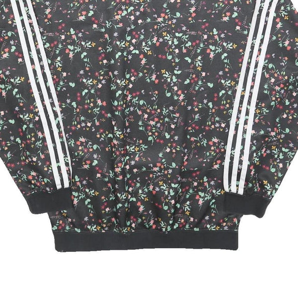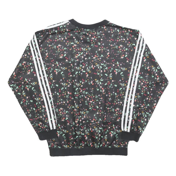 ADIDAS Womens Black Floral Print Crew Neck UK 10 Sweatshirt 3-Stripes