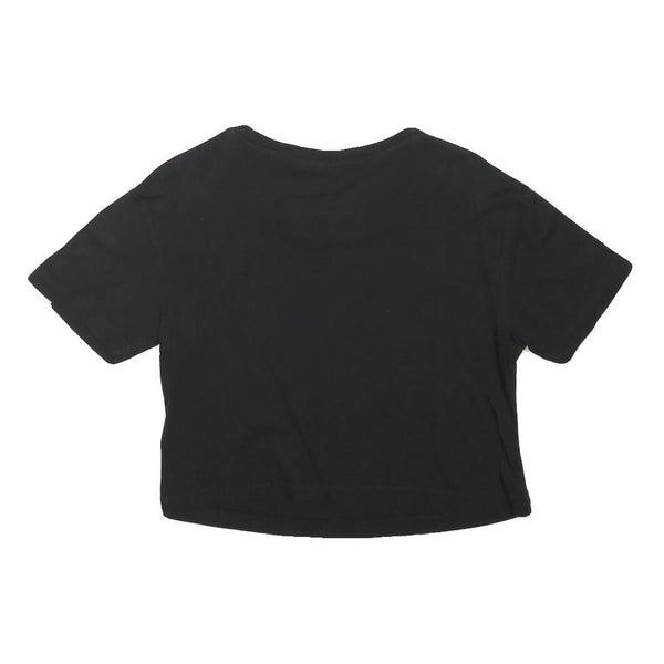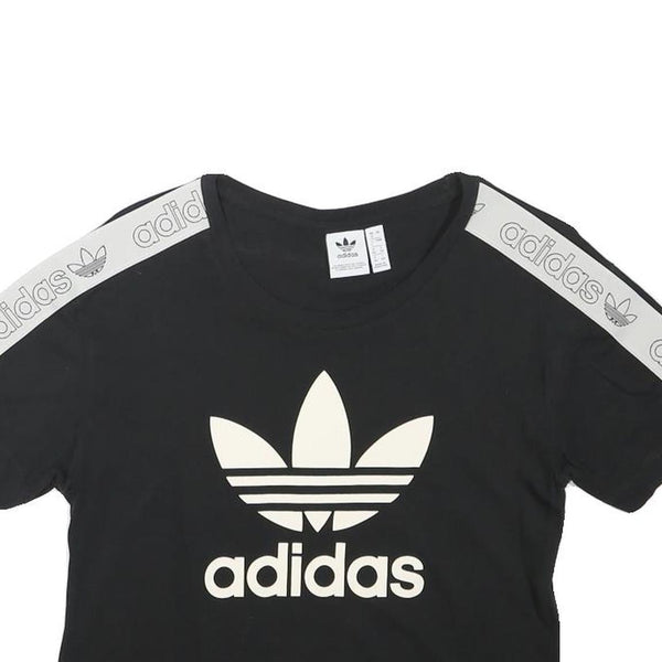 ADIDAS Womens Black & White Logo Crop T-Shirt UK 8 Short Sleeve Crew Neck Casual