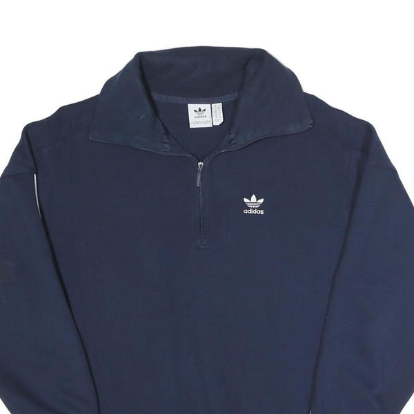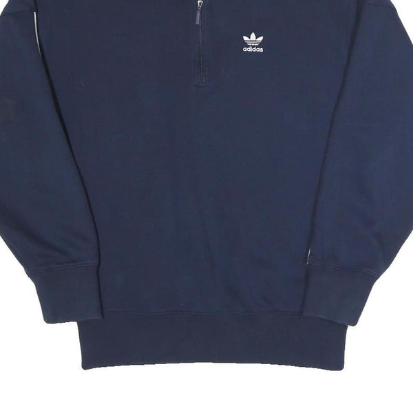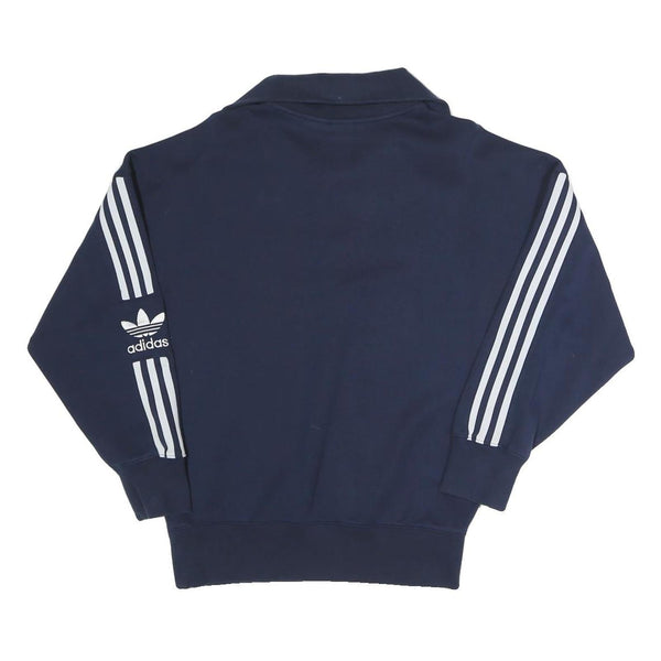 ADIDAS Womens Navy Blue Sweatshirt 1/4 Zip UK 8 Cotton Blend Casual Sportswear