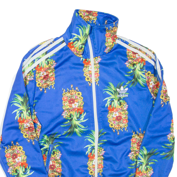 ADIDAS Womens Track Jacket Blue Floral UK 16