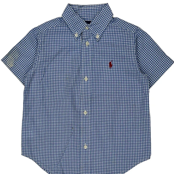 Age 3 polo by ralph lauren checked short sleeve shirt - xs blue cotton