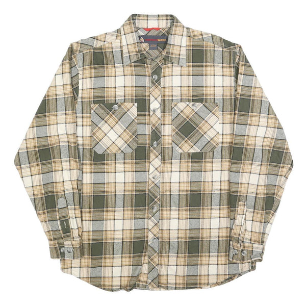 AMERICA WEAR Mens Green & Beige Check Shirt L Cotton Classic Plaid Long Sleeve