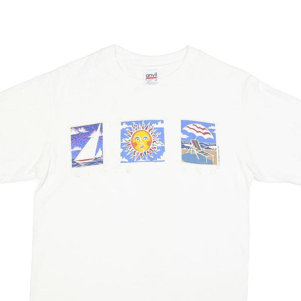 ANVIL Womens White Graphic T-Shirt M Short Sleeve Crew Neck Summer Design