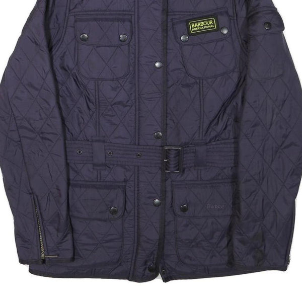 BARBOUR INTERNATIONAL Womens Navy Blue Quilted Belted Jacket UK 10 Polyester