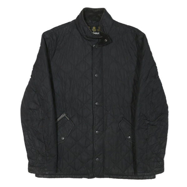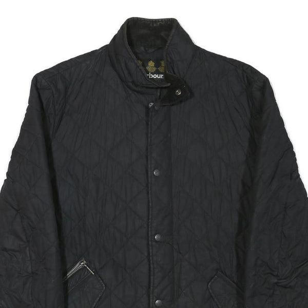 Barbour mens black quilted jacket l polyester blend button closure classic fit