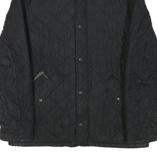 BARBOUR Mens Black Quilted Jacket L Polyester Blend Button Closure Classic Fit