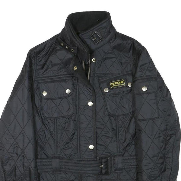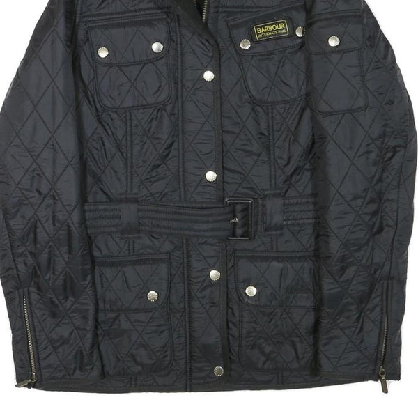 BARBOUR Womens Black Quilted Jacket UK 10 Polyester Blend Zip Belted