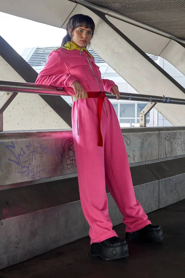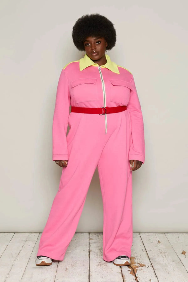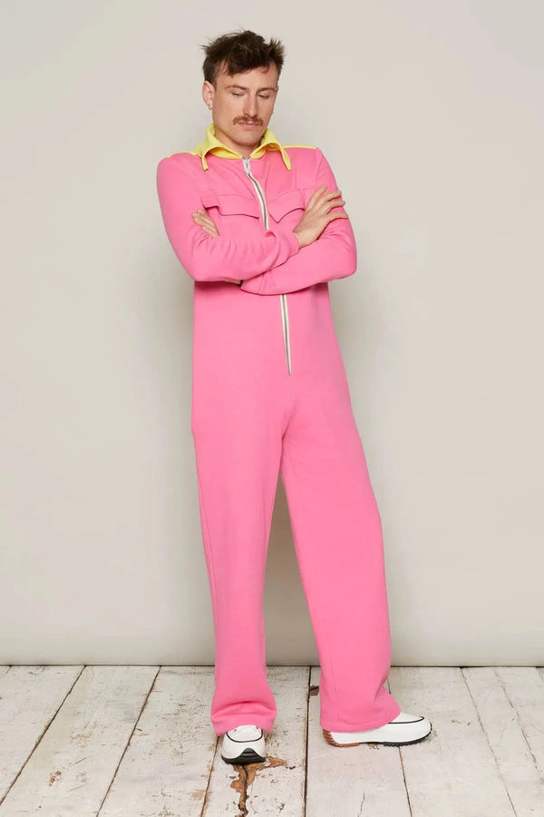 Explore our vibrant and stylish organic fleece boiler suit - a super funky addition to your wardrobe! Crafted from ultra-soft organic fleece, this boiler suit boasts a chunky front zip and a striking contrast color yoke and collar