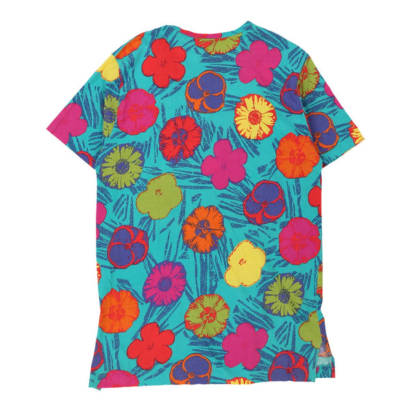 Benetton Floral T-Shirt - Medium Blue Cotton