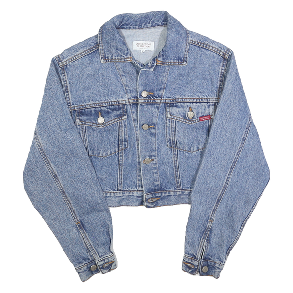 BENETTON Womens Blue Denim Button Jacket S Cotton Classic Crop Casual