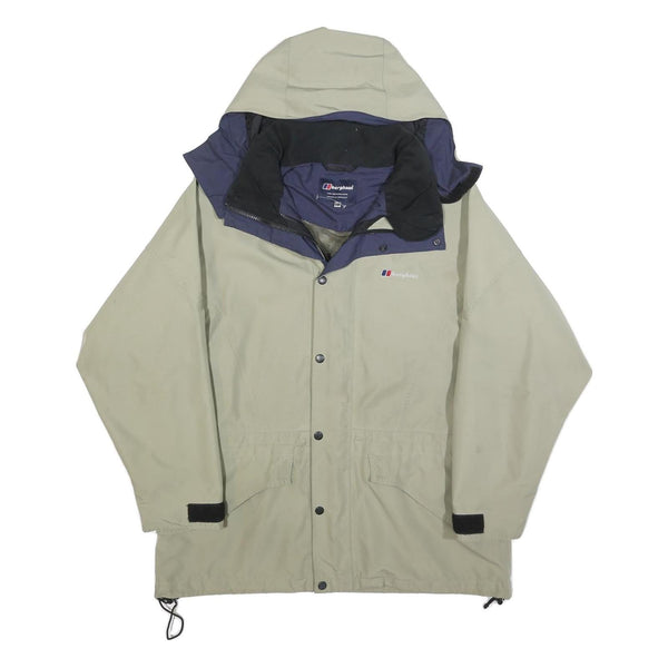 BERGHAUS Womens Beige & Navy Outdoor Jacket L Polyester Woven Zip Plain Hooded