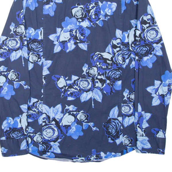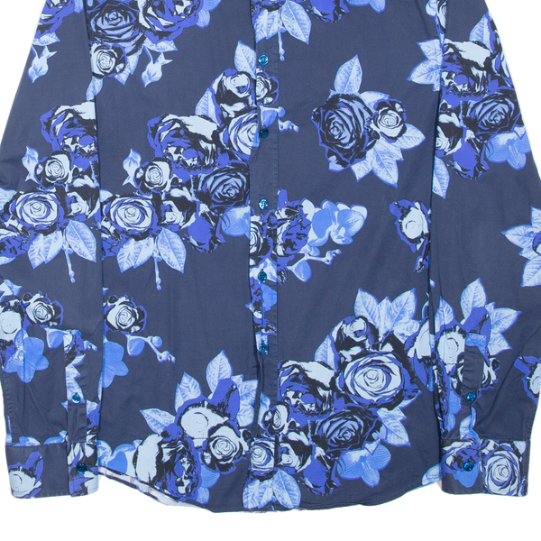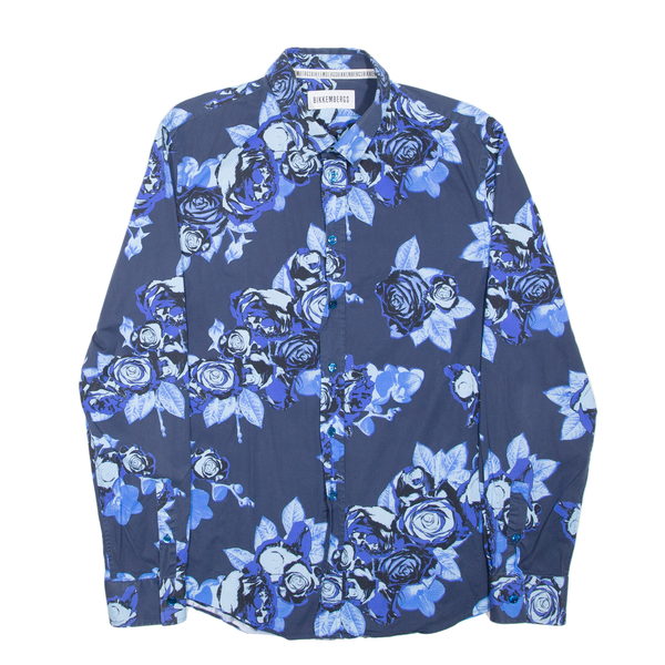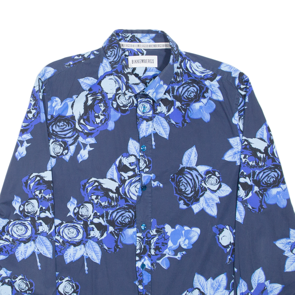 BIKKEMBERGS Mens Plain Shirt Blue Floral Long Sleeve M