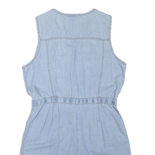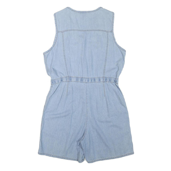 BILL BLASS Womens Light Blue Denim Playsuit S Cotton Blend Button Front